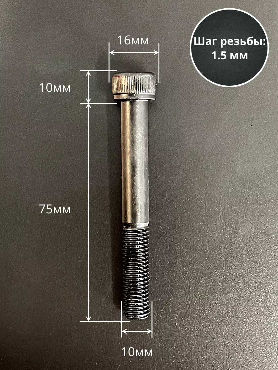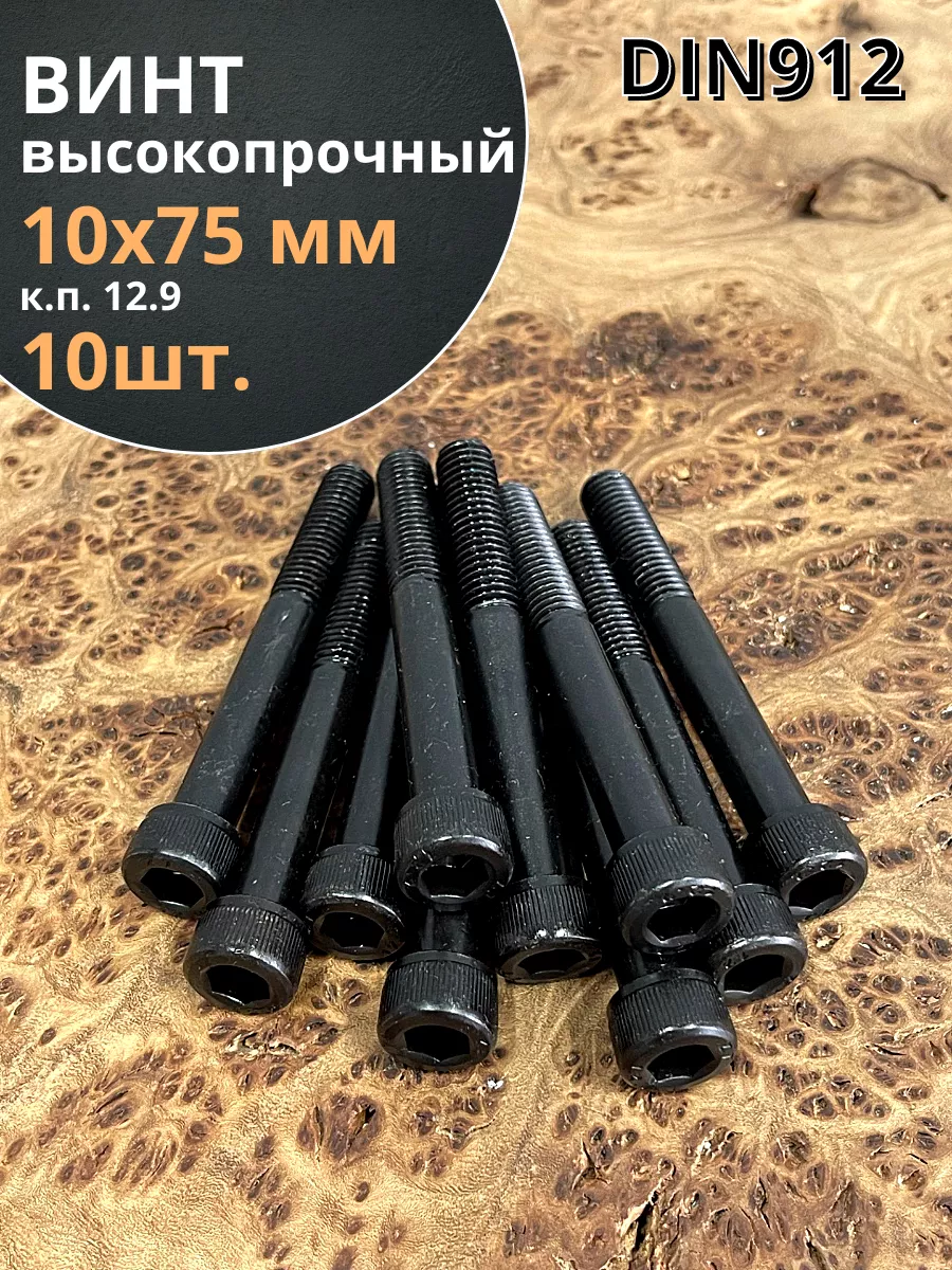 Винт высокопрочный НР М10х75 мм к.п.12.9 черный DIN912, 10 шт.