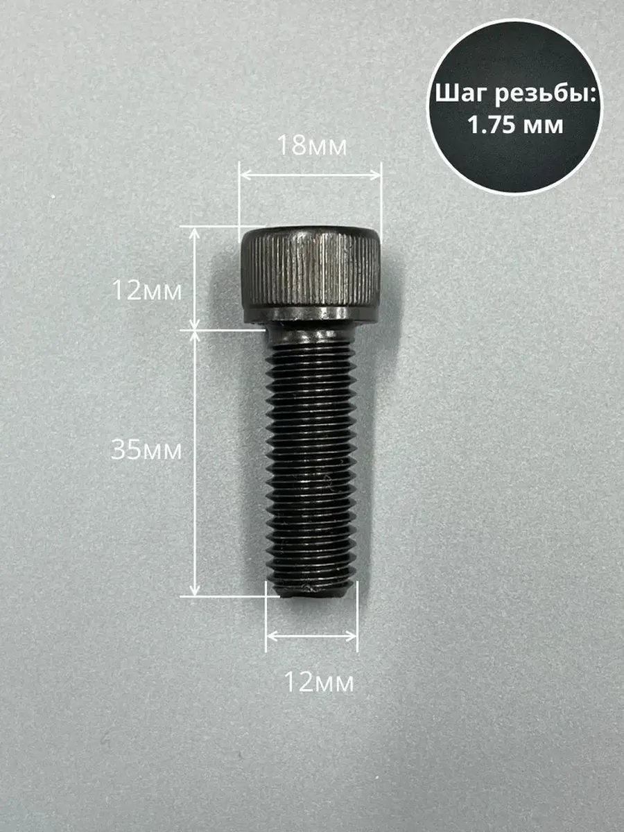 Винт высокопрочный ПР М12х35 мм к.п.12.9 черный DIN912, 2 шт.