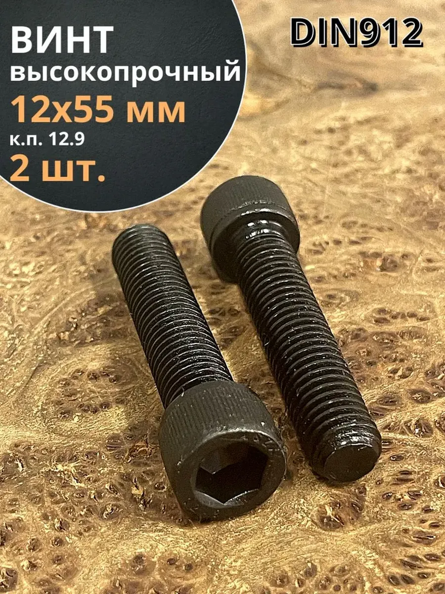 Винт высокопрочный ПР М12х55 мм к.п.12.9 черный DIN912, 2 шт.