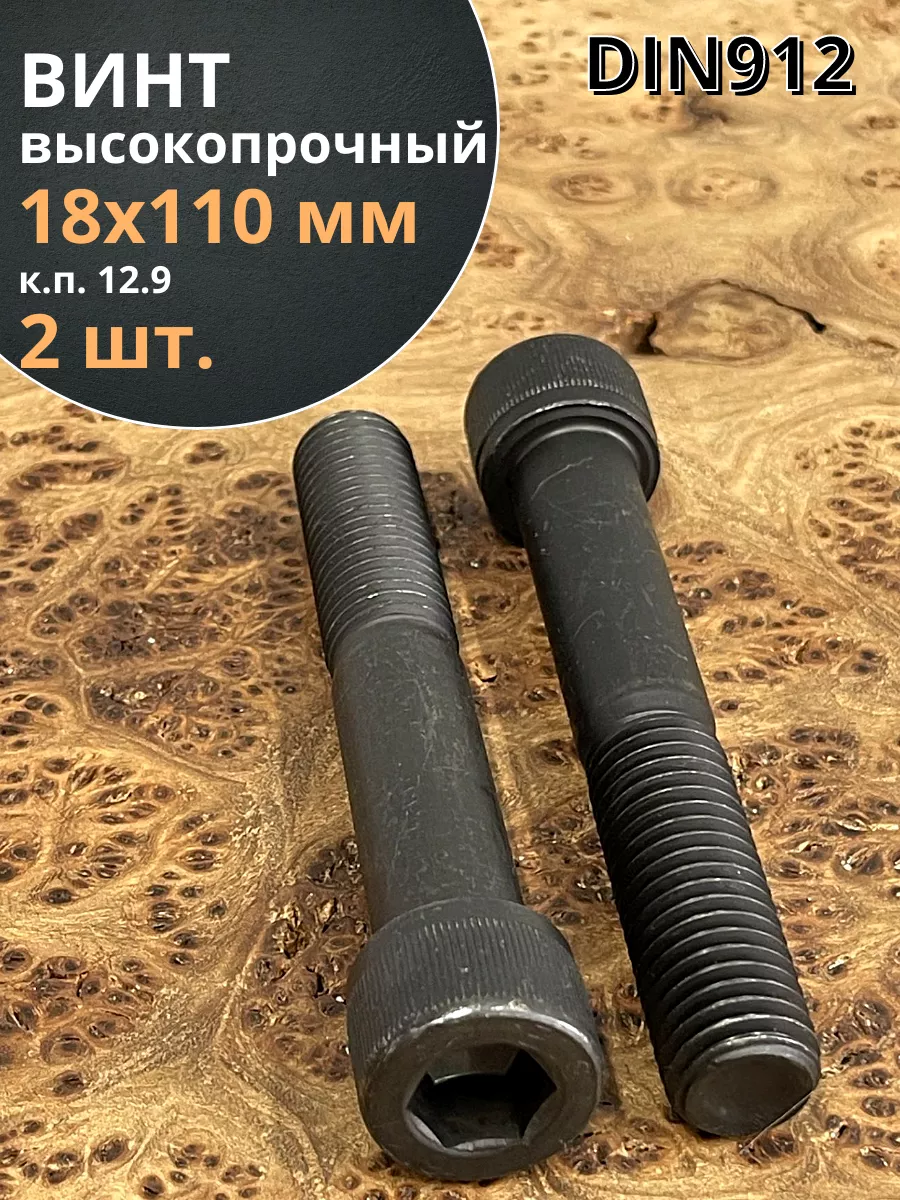 Винт высокопрочный НР М18х110 мм к.п.12.9 черный DIN912, 2 шт.
