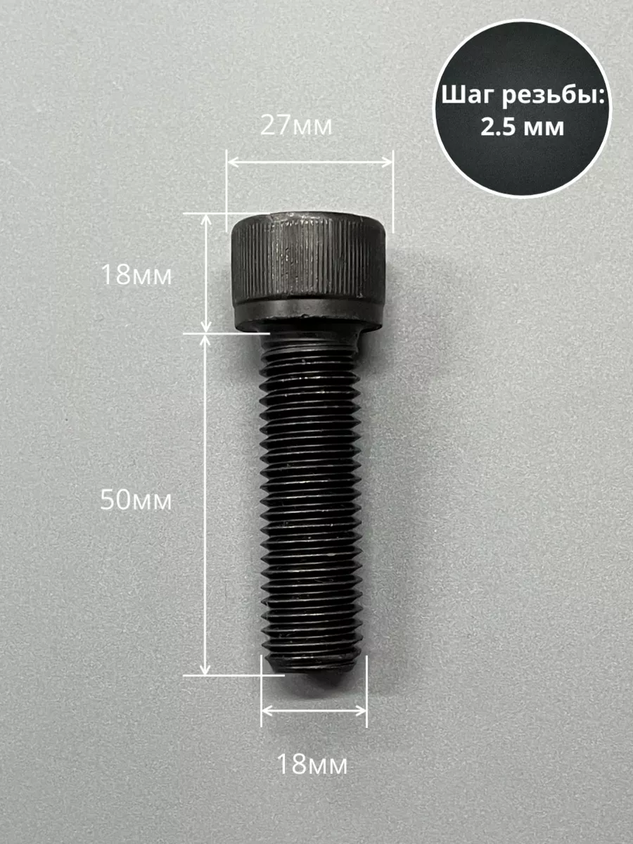 Винт высокопрочный ПР М18х50 мм к.п.12.9 черный DIN912, 2 шт.