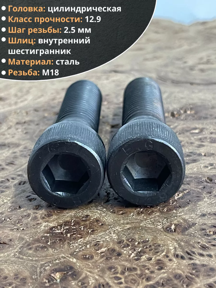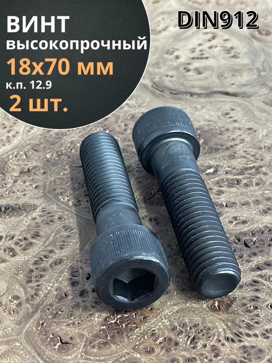 Винт высокопрочный НР М18х70 мм к.п.12.9 черный DIN912, 2 шт.