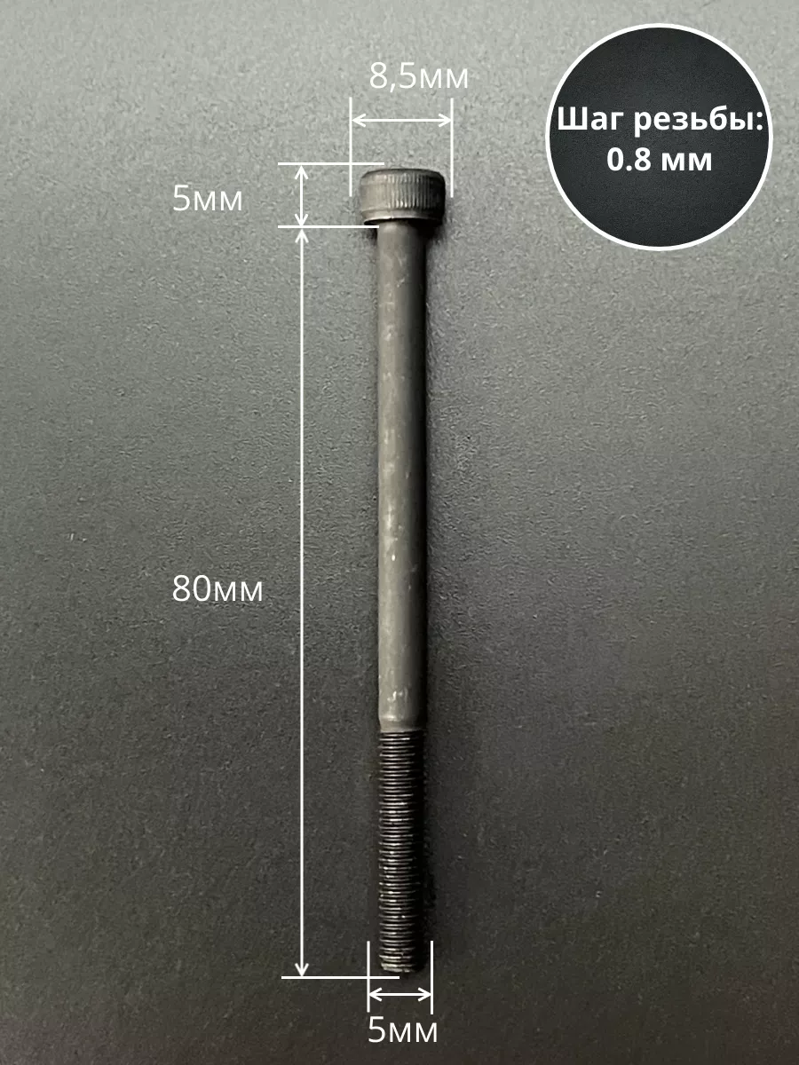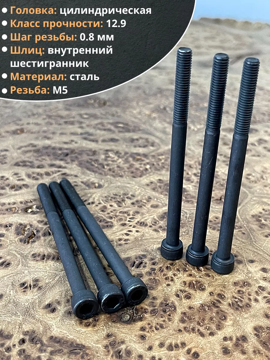 Винт высокопрочный НР М5х80 мм к.п.12.9 черный DIN912, 10 шт.