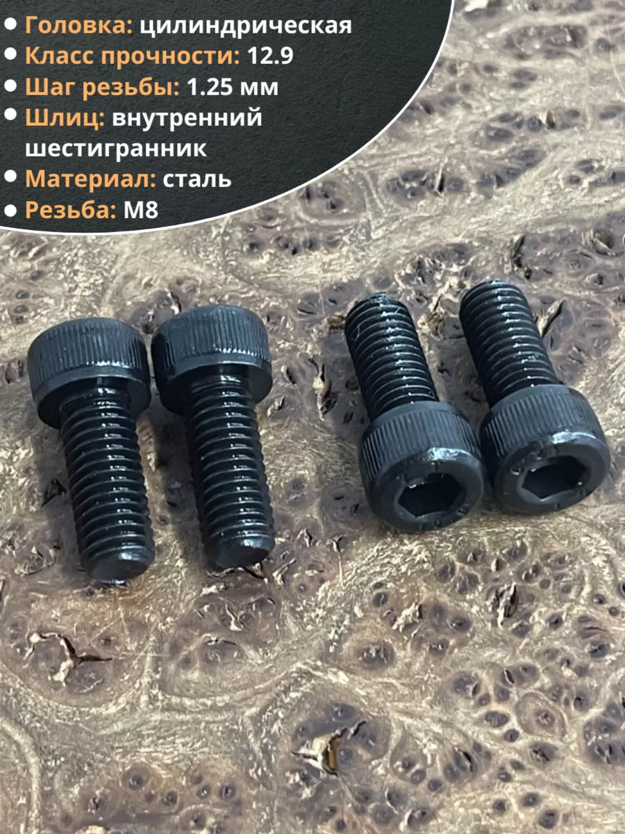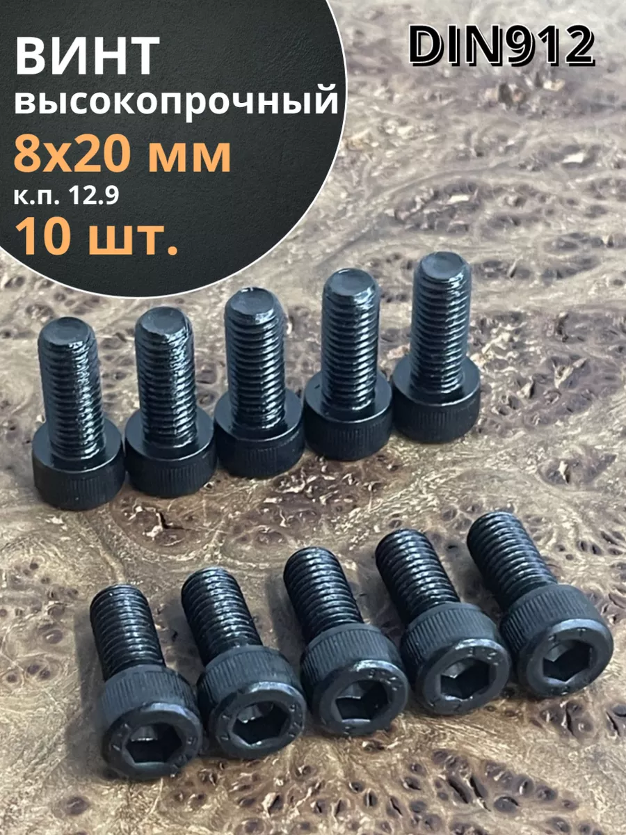 Винт высокопрочный ПР М8х20 мм к.п.12.9 черный DIN912, 10 шт.
