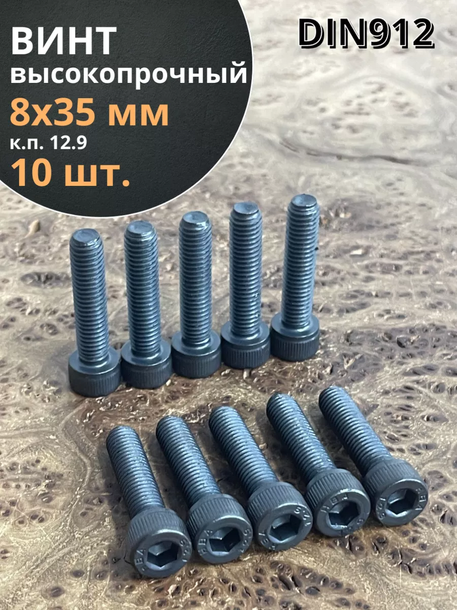 Винт высокопрочный ПР М8х35 мм к.п.12.9 черный DIN912, 10 шт.