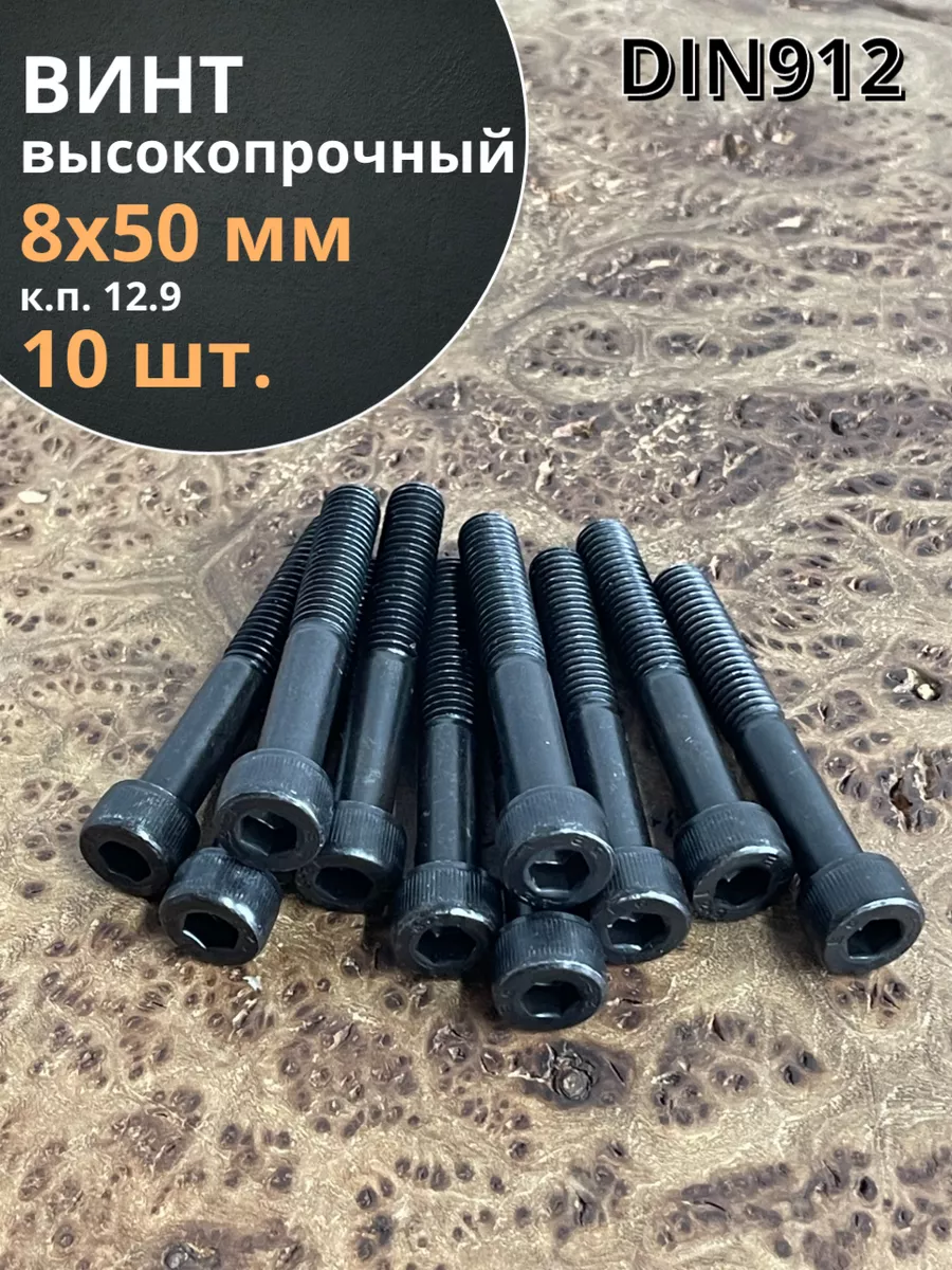 Винт высокопрочный НР М8х50 мм к.п.12.9 черный DIN912, 10 шт.