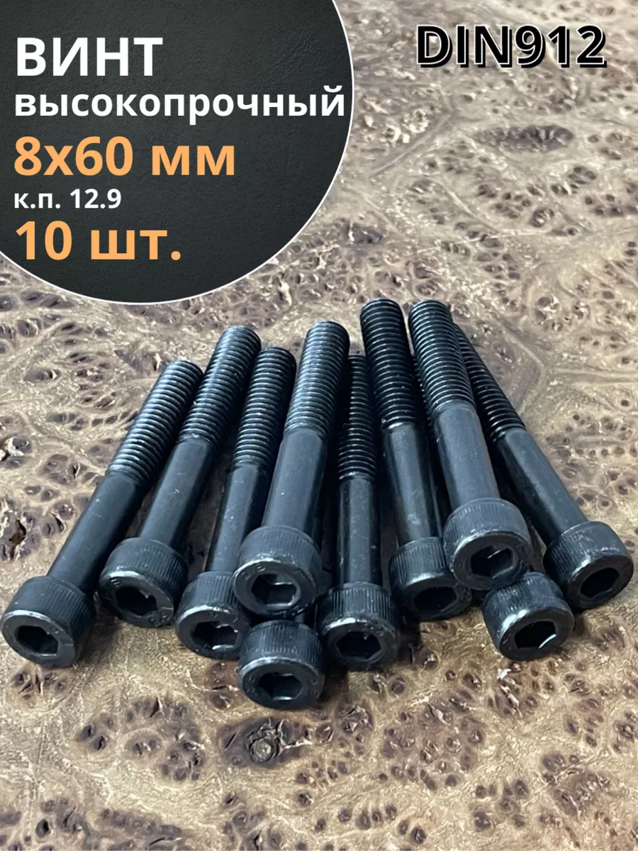 Винт высокопрочный НР М8х60 мм к.п.12.9 черный DIN912, 10 шт.