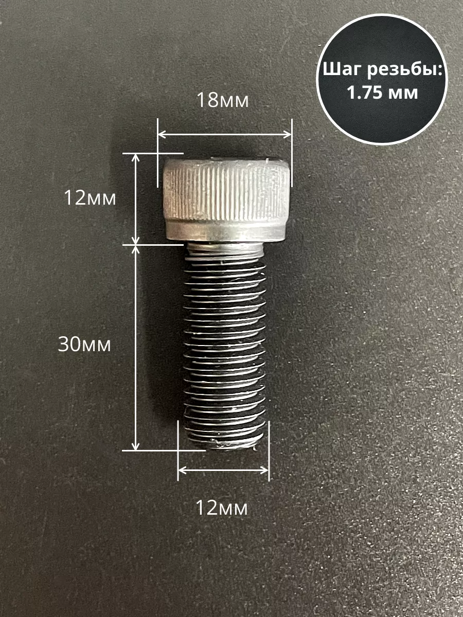 Винт высокопрочный ПР М12х30 мм к.п.12.9 черный DIN912, 4 шт.