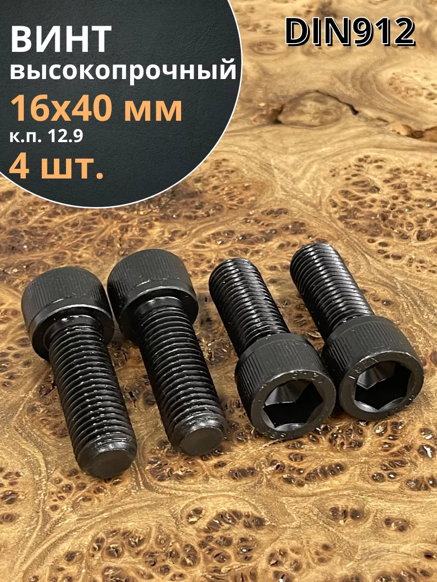 Винт высокопрочный ПР М16х40 мм к.п.12.9 черный DIN912, 4 шт.