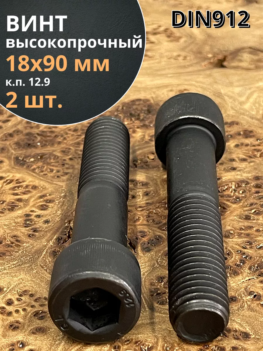Винт высокопрочный НР М18х90 мм к.п.12.9 черный DIN912, 2 шт.