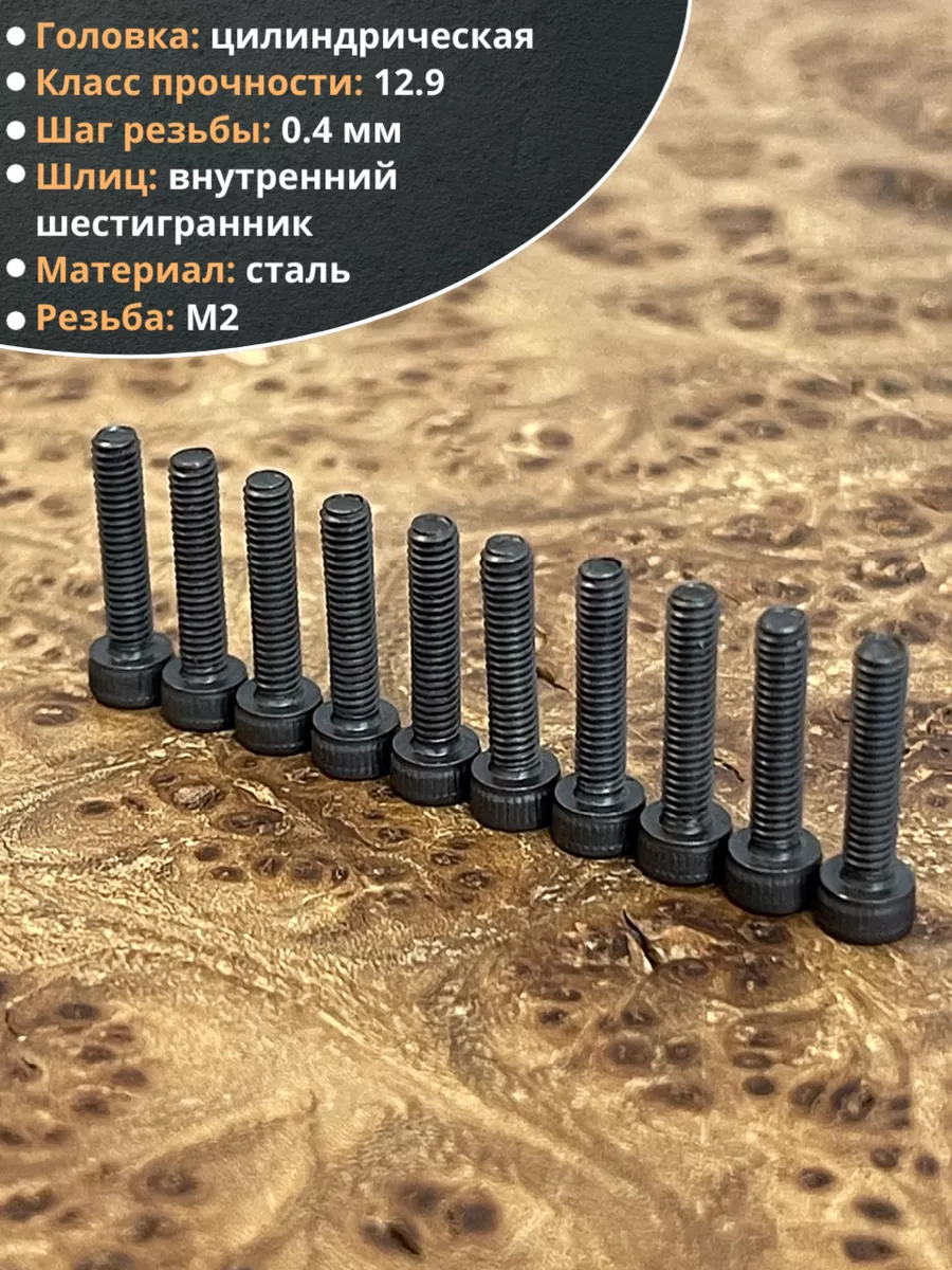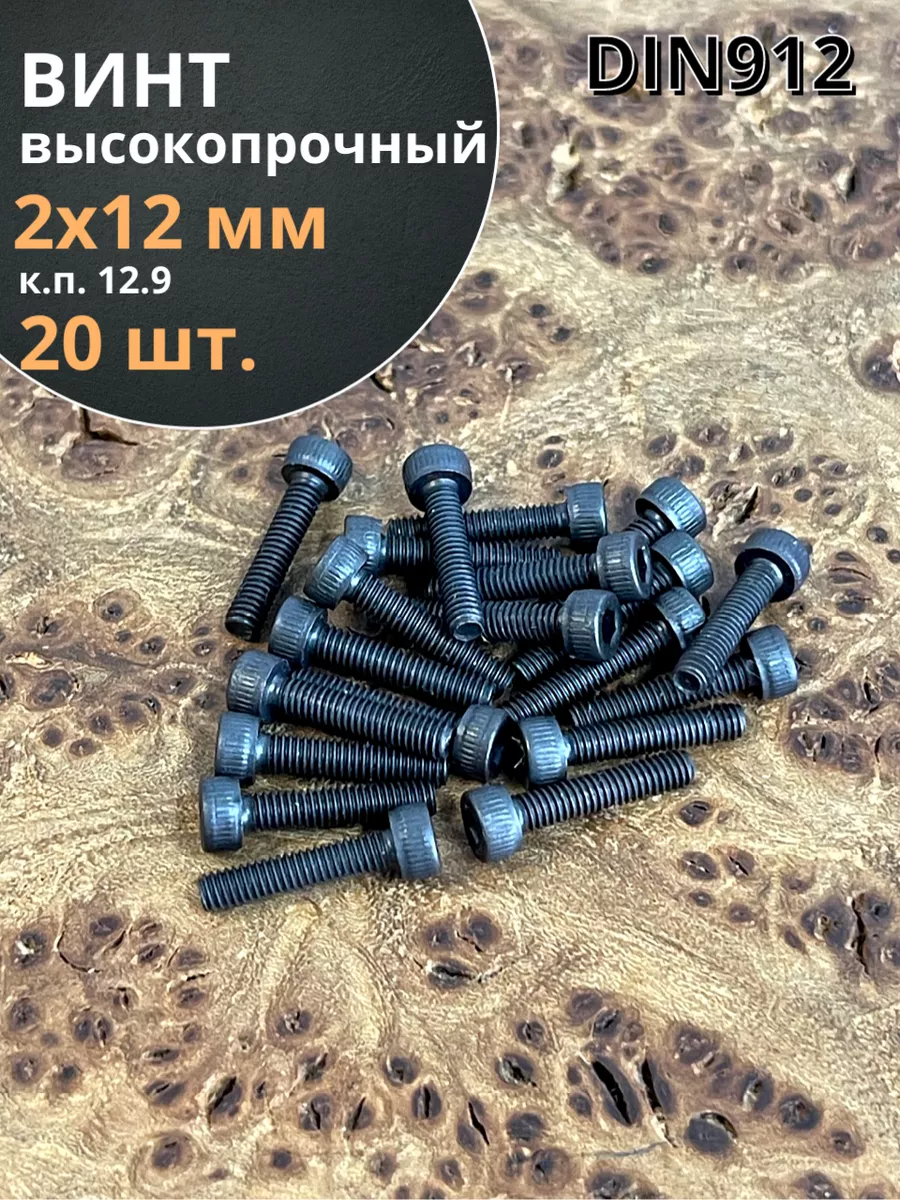 Винт высокопрочный ПР М2х12 мм к.п.12.9 черный DIN912, 20 шт.