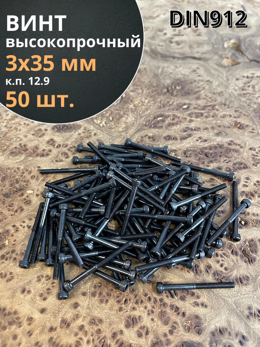 Винт высокопрочный НР М3х35 мм к.п.12.9 черный DIN912, 50 шт.