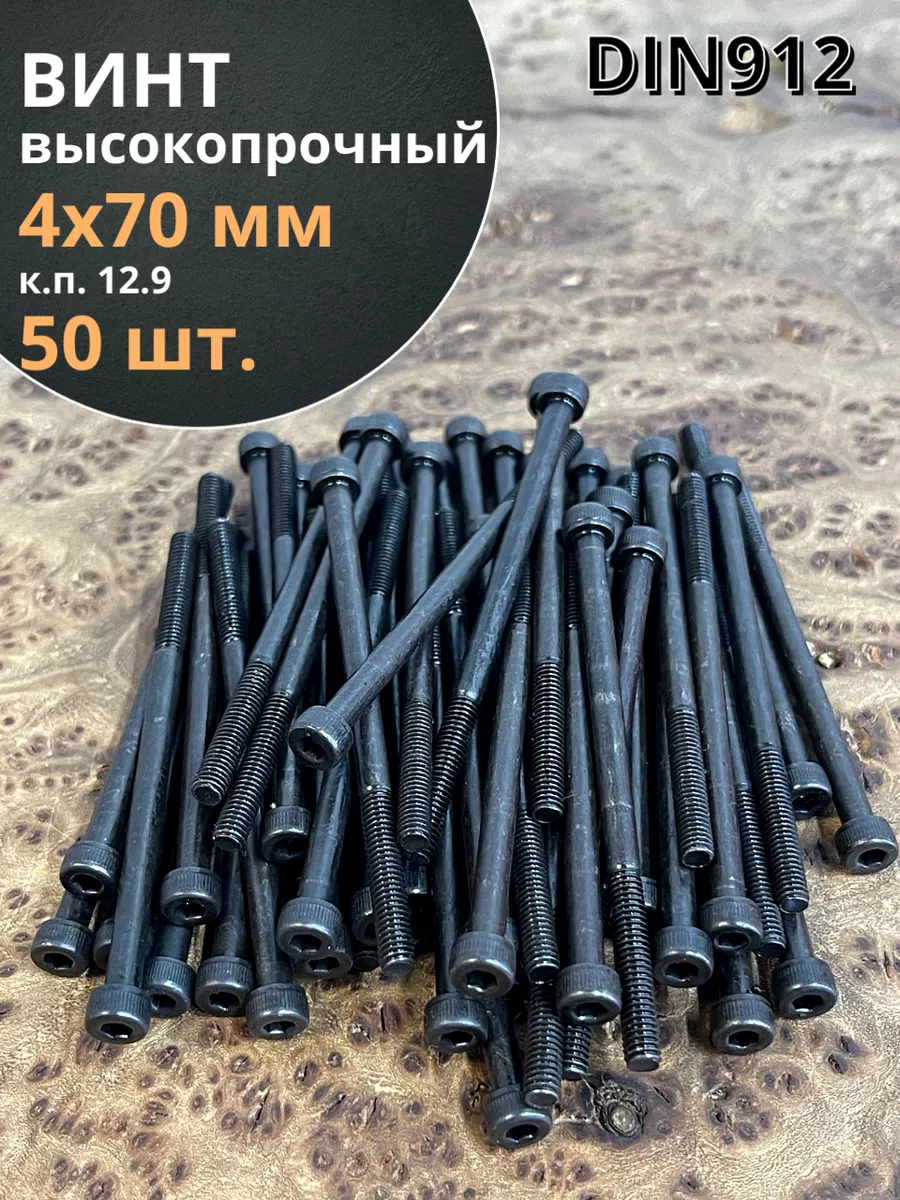 Винт высокопрочный НР М4х70 мм к.п.12.9 черный DIN912, 50 шт.