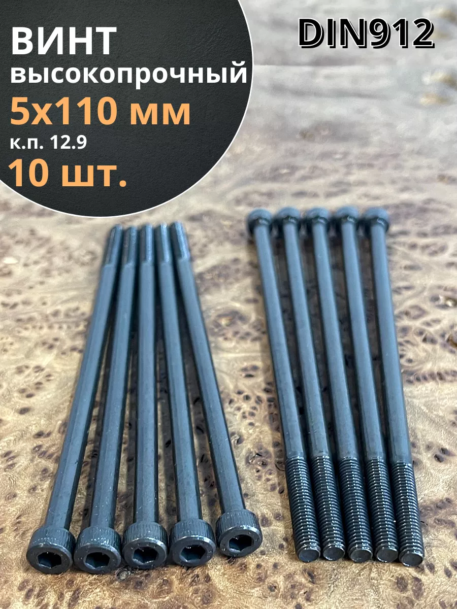 Винт высокопрочный НР М5х110 мм к.п.12.9 черный DIN912, 10 шт.