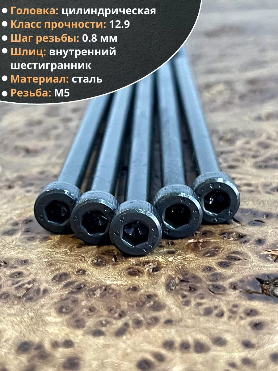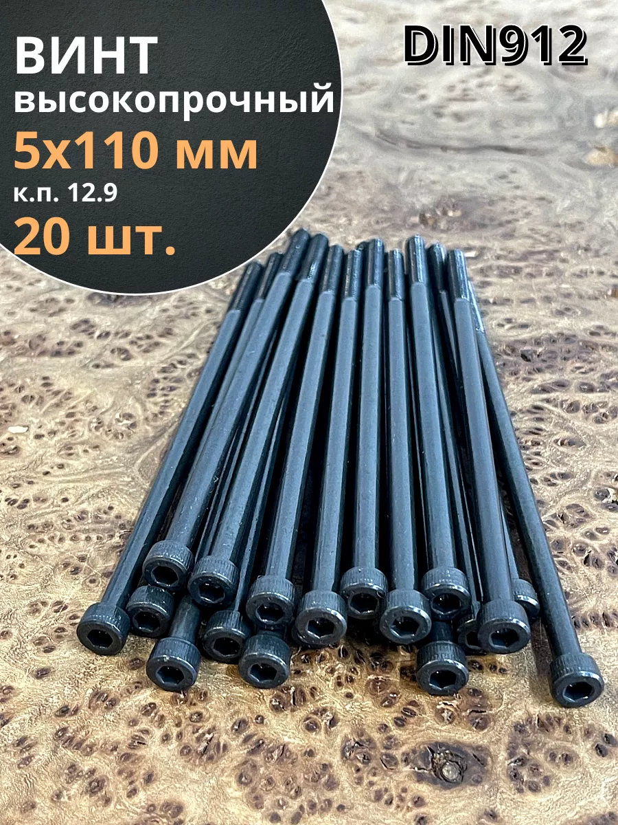 Винт высокопрочный НР М5х110 мм к.п.12.9 черный DIN912, 20 шт.