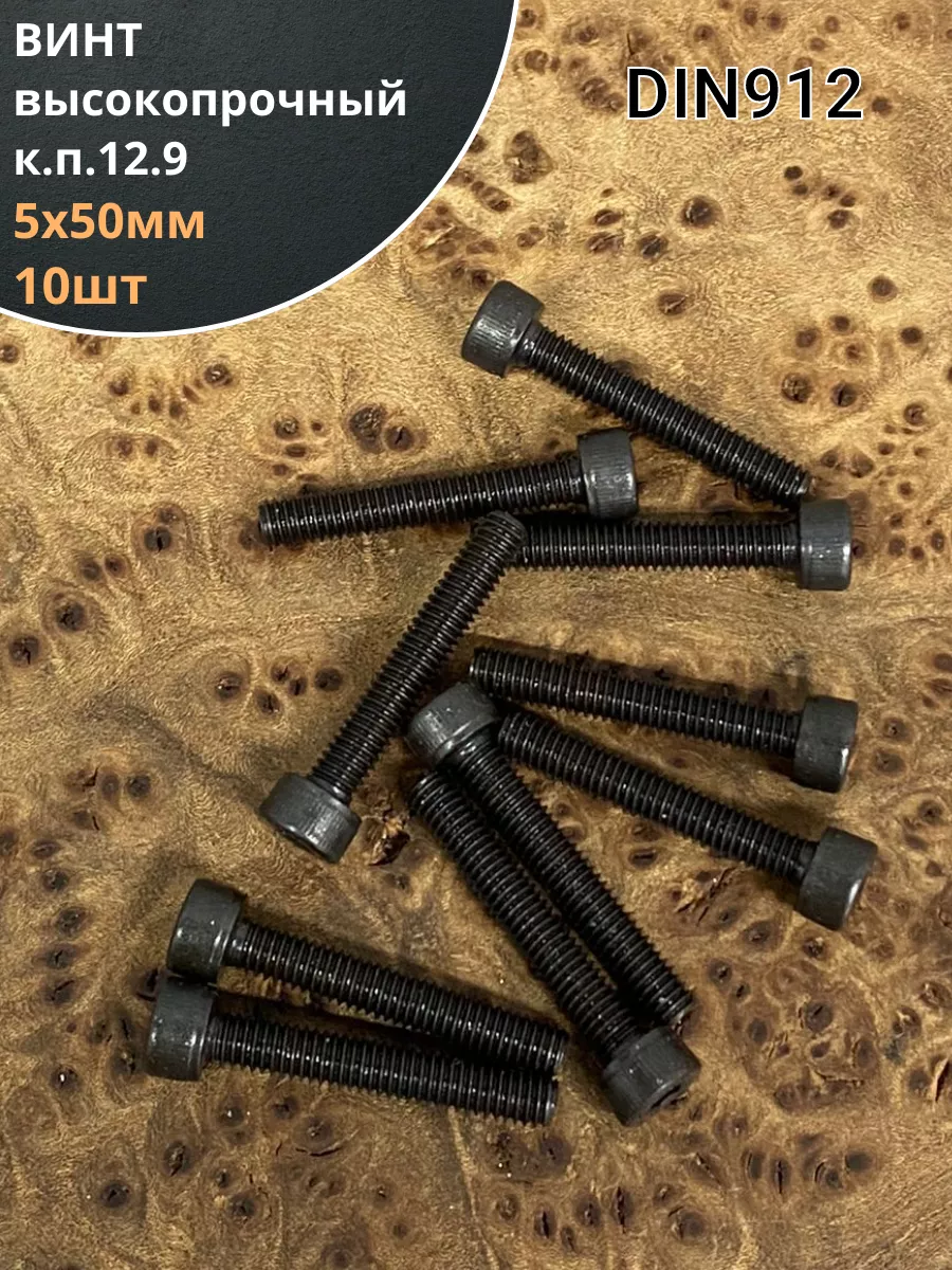 Винт высокопрочный НР М5х50 мм к.п.12.9 черный DIN912, 10 шт.