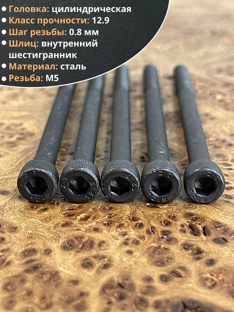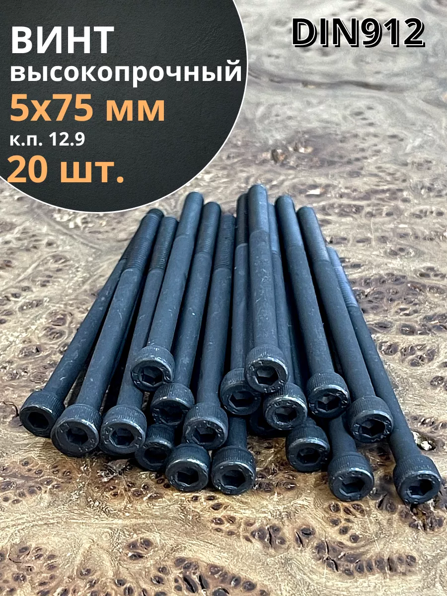 Винт высокопрочный НР М5х75 мм к.п.12.9 черный DIN912, 20 шт.