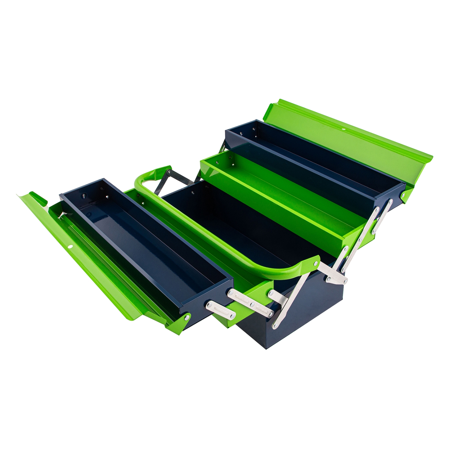 Удобное использование — ящик легко раскладывается, ручка поворачивается и не мешает размещать или извлекать инструменты.