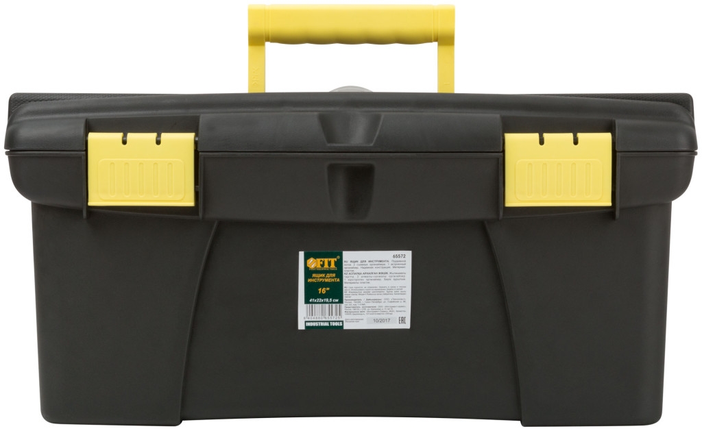 Ящик FIT 65572 предназначен для хранения и удобной транспортировки инструментов. Изготовлен из качественного, экологически безопасного пластика. Подвижный лоток и два съемных органайзера на крышке позволяют разместить необходимые инструменты и аксессуары. Ящик надежно закрывается с помощью защелок. Усиленная рукоятка обеспечивает комфортную переноску. Инструментальный ящик применяется как в профессиональной сфере, так и в быту: он очень вместительный, помогает упорядочить нужные в работе предметы и всегда держать их под рукой.