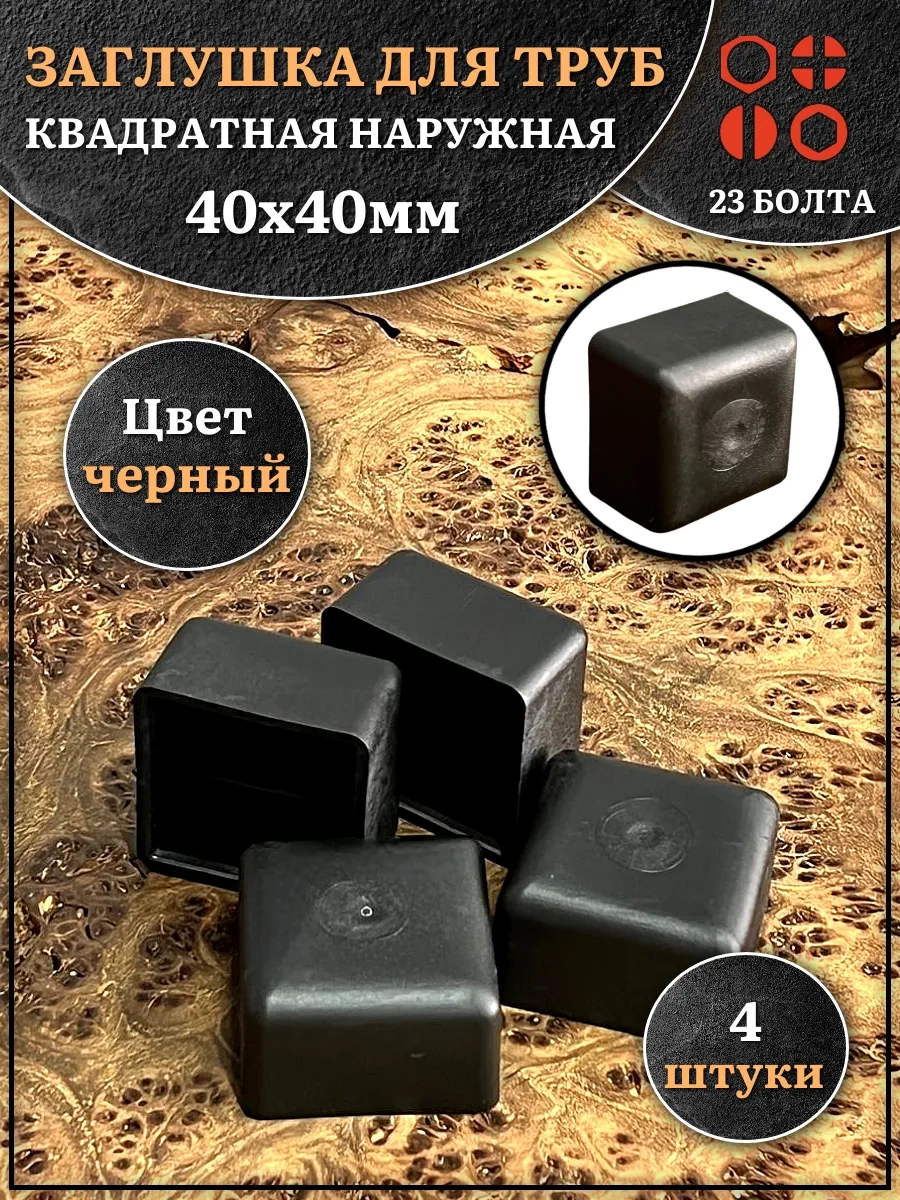 Заглушка для труб наружная квадратная 40х40 мм черная,4 шт.