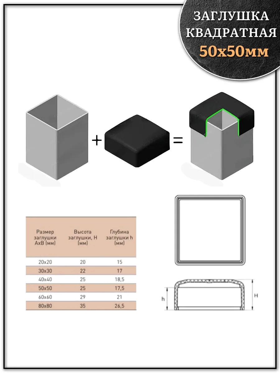 | Заглушка для труб наружная квадратная 50х50 мм черная,4 шт. | 26-3050ф4 | 1 шт. |