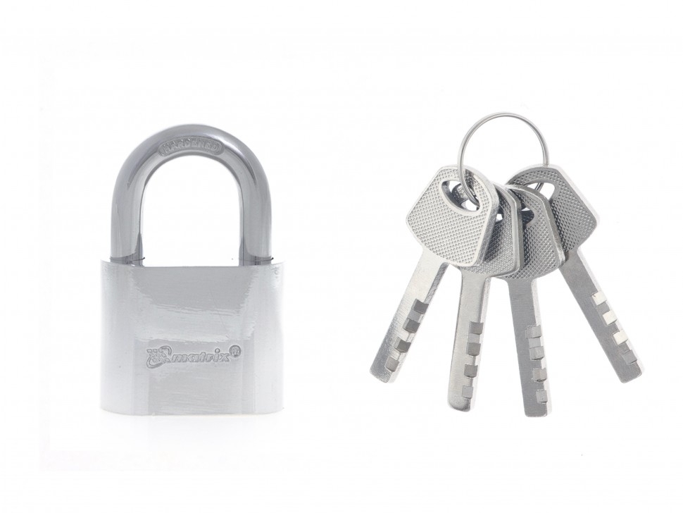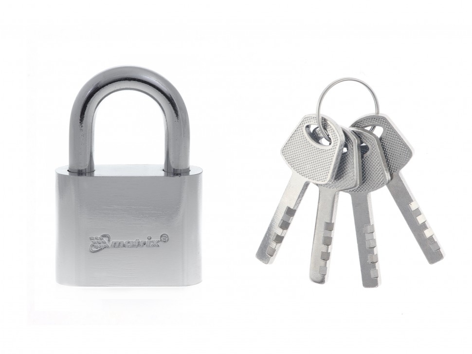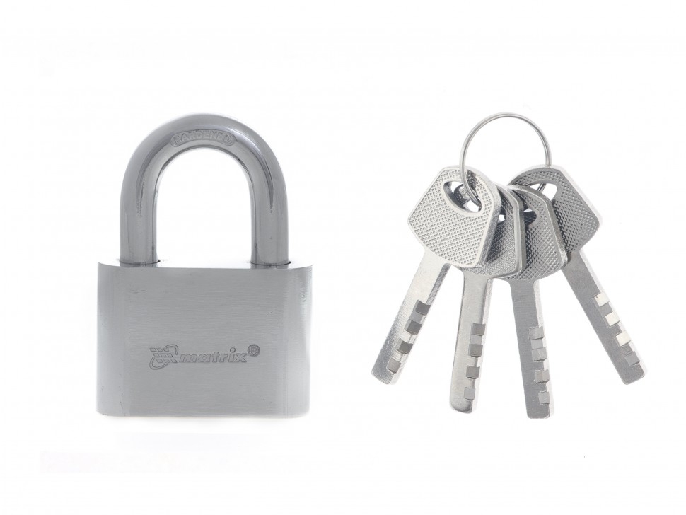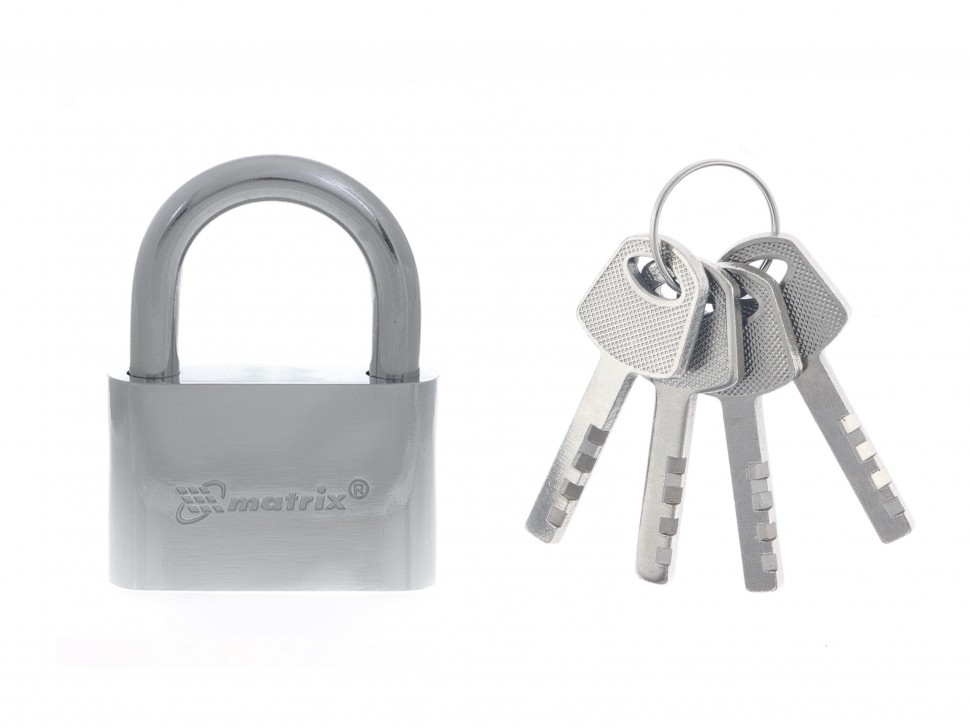 Навесной замок MATRIX хромированное покрытие 60 мм 91802 - это крепежное приспособление, которое позволит сохранить ценные вещи. Изделие изготовлено из стали. Замок покрыт хромом, что позволяет предотвратить появление коррозии. Механизм секретности выполнен из стали с латунным покрытием. В комплекте с замком поставляется 4 ключа.