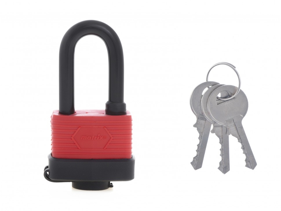 Навесной всепогодный замок с удлиненной дужкой 50 мм Matrix 91826 вешается на двери для сохранности имущества. С его помощью можно защитить от несанкционированного проникновения сарай, гараж, подвал и другие помещения. Обрезиненное покрытие корпуса обеспечивает герметизацию замка, повышая его устойчивость к образованию коррозии и воздействию окружающей среды.