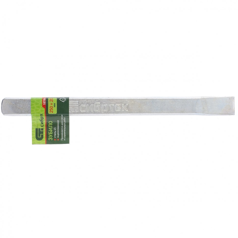 Оцинкованное зубило Сибртех 18786 размером 250 х 20 мм, из стали 45, предназначено для ударного воздействия на различные конструкции с помощью киянки или молотка. Его можно использовать для рубки, штробления и раскалывания камня, бетона и кирпича. Инструмент пригодится для проведения строительных, слесарных и скульптурных работ.